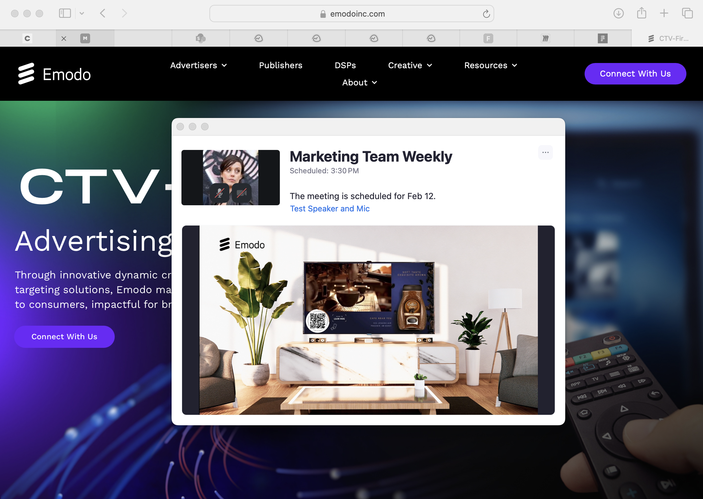 Emodo's new CTV offerings were promoted through eye-catching Zoom backgrounds, designed to immerse viewers in a cinematic experience from the moment they entered a virtual meeting.